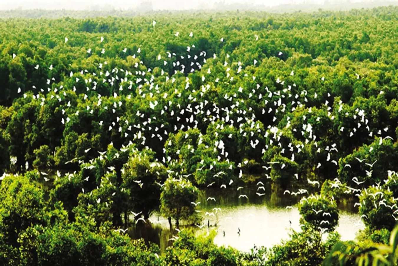 - Khung giờ đẹp nhất để tham quan rừng tràm Trà Sư là 7:00-9:00 và 14:00-19:00. Lúc này bạn sẽ được chiêm ngưỡng cảnh muôn loài chim bay lượn trên không trung để bay đi kiếm ăn hoặc trở về tổ. Bao quanh đó là màu sắc của rừng xanh, âm thanh của nhưgx tiếng đập cánh hàng loạt và cây lá xao động, tạo nên một bức tranh sống động về cả âm thanh và hình ảnh.